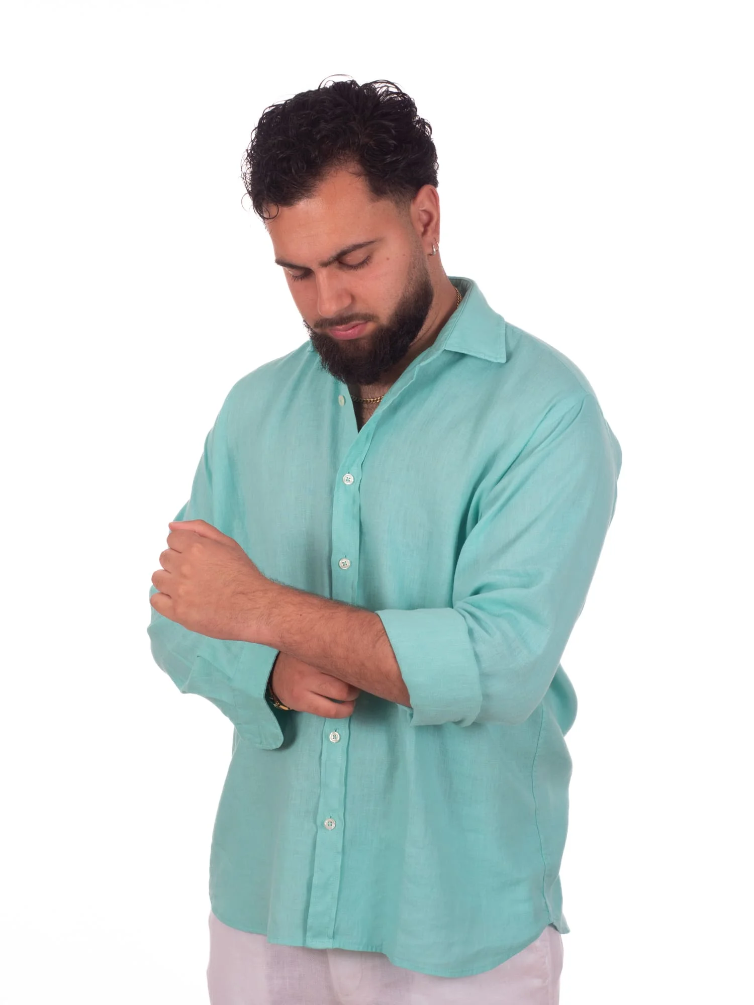 La Camisa Puro Lino Verde Agua para hombre combina la elegancia mediterránea con la moda sostenible en una prenda confeccionada con lino 100% natural. Su fresco color Verde Agua evoca los paisajes costeros del Mediterráneo, aportando un toque de distinción a tu ropa casual de lino. Esta camisa de lino transpirable te mantiene fresco y cómodo incluso en los días más cálidos, logrando esa sensación de ropa fresca y cómoda ideal para el verano. Versátil y sofisticada, esta prenda de lino de calidad se adapta a las últimas tendencias en moda masculina sin perder su estilo atemporal.