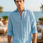 Eleva tu look con la simplicidad y la versatilidad del azul , y descubre el poder de la elegancia sin esfuerzo con nuestra camisa de lino blanca.