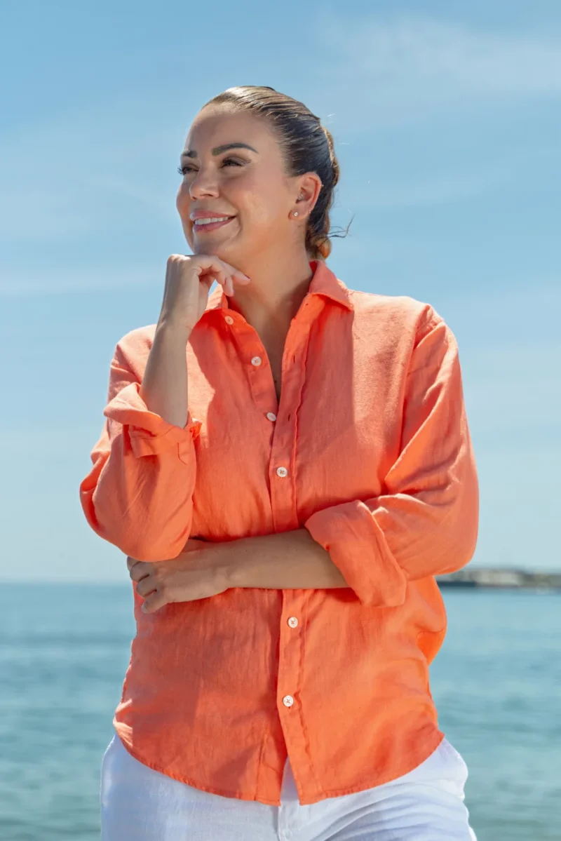 Camisa Puro Lino Premium Papaya Mujer