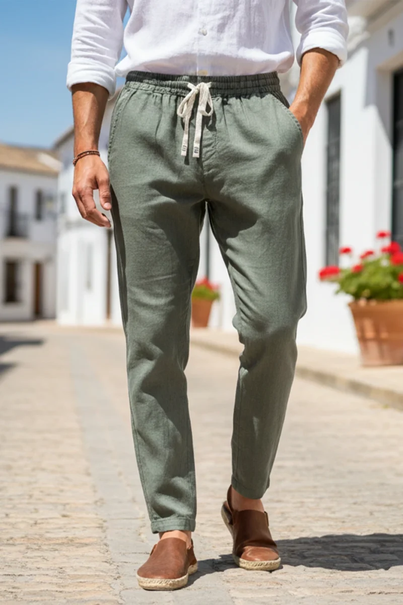Pantalón Lino Kaki Ibiza