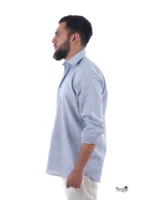 Realza tu estilo con el impacto y la clase del color azul, y descubre la elegancia atemporal con nuestra camisa de lino mil rayas azul.