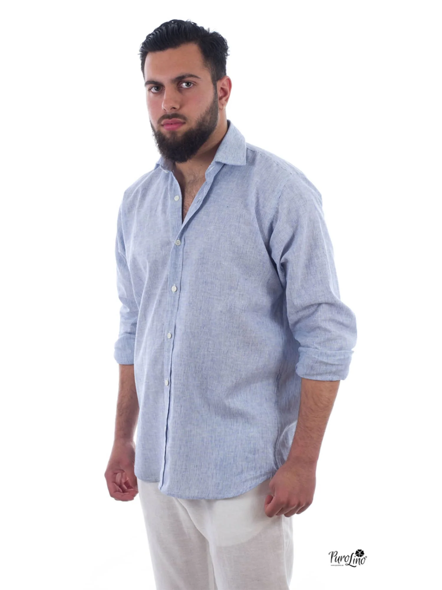 La camisa de lino mil rayas azul para hombre es un clásico renovado que une la estética marinera con la comodidad del lino. Presenta un patrón de finas rayas en azul sobre blanco que le da un aire fresco y veraniego, ideal para crear looks casuales de lino con pantalones claros o bermudas. Confeccionada con tejidos naturales como el Lino y el Algodón, es transpirable y ligero, garantizando una prenda fresca y cómoda incluso bajo el sol. Versátil y atemporal, esta camisa encarna la elegancia mediterránea y las últimas tendencias en moda masculina de forma sutil, convirtiéndose en una elección infalible para el día a día o las vacaciones.